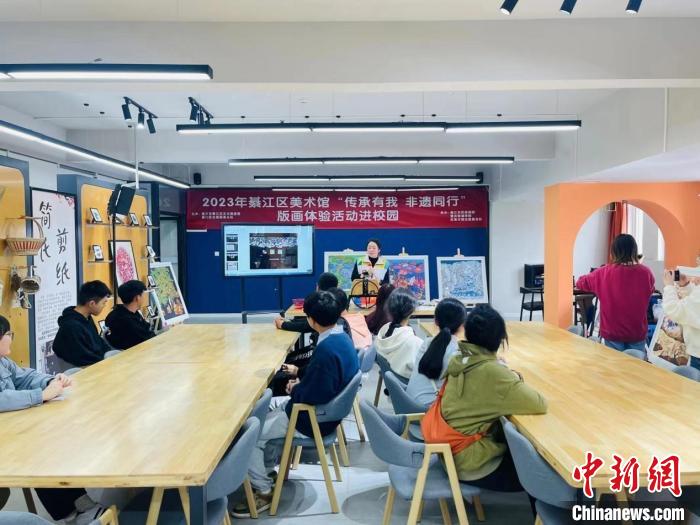 圖為綦江農(nóng)民版畫走進校園活動現(xiàn)場。 綦江農(nóng)民版畫院 供圖