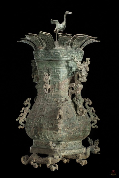 郭沫若最終將其定名為蓮鶴方壺,這對青銅時(shí)代承上啟下的絕代珍品,被列入首批禁止出國(境)展覽文物名單的“國之重器”,現(xiàn)分別藏于河南博物院和北京故宮博物院。