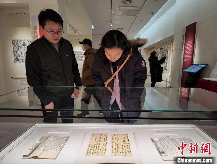 現(xiàn)場展出一批武氏風格畫像拓片。趙曉 攝