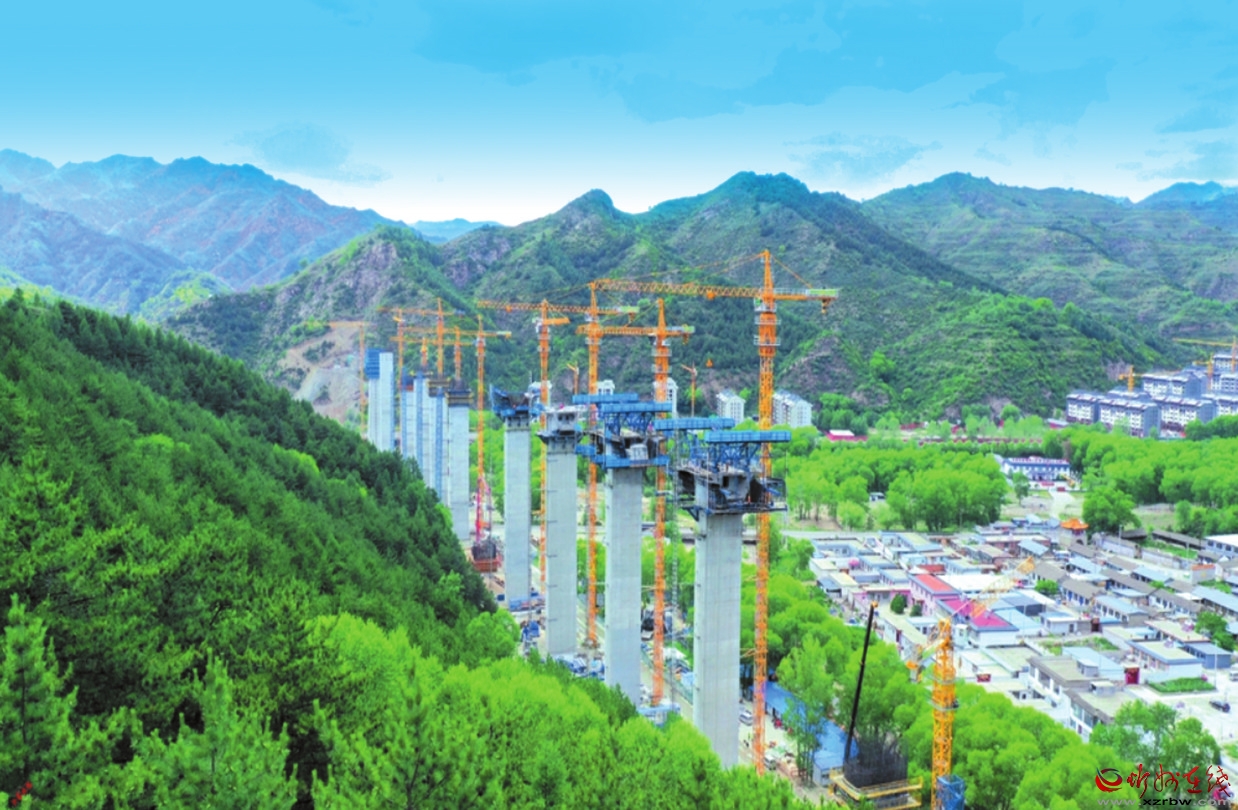 在雄忻高鐵五臺山段項(xiàng)目施工現(xiàn)場,青山環(huán)抱中,機(jī)械轟鳴,工程車輛穿梭。