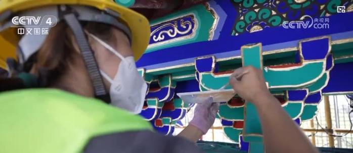如今的北京中軸線構建起了現(xiàn)代都市與歷史空間巧妙融合的城市景觀。北京中軸線上的前門五牌樓曾因常年風吹日曬,導致油飾層開裂、失去華彩。2022年,古建油飾彩畫專家堅持古法彩繪,對前門五牌樓進行了翻新,令牌樓呈現(xiàn)出恢弘大氣的視覺效果。作為世界遺產的北京中軸線同時也是百姓日常工作生活的場景,這讓北京中軸線成為了“活遺產”。而在北京中軸線的最南端,重新復建的永定門如今已經成為了百姓休閑和游客打卡的好去處。