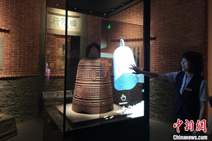 中國(guó)閩臺(tái)緣博物館里的眾多涉臺(tái)文物述說著兩岸間難以割舍的情感紐帶。圖為清道光十七年鹿港郊公置鐵鐘。 吳冠標(biāo) 攝