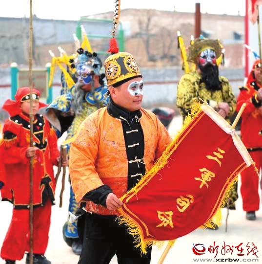 把古代戰(zhàn)爭場面演練成劇,表現(xiàn)多為騎兵對戰(zhàn),故稱為大馬社火。今年春節(jié)期間,定襄北社西村大馬社火被錄制成視頻上傳后,成為最受歡迎的鬧紅火視頻之一,人們紛紛轉(zhuǎn)載,贊不絕口。剛剛過去的元宵節(jié),大馬社火也是定襄鬧元宵不可或缺的重頭戲,北社西村眾多村民自發(fā)組織起來耍社火,表達(dá)祈福驅(qū)邪,對風(fēng)調(diào)雨順、豐產(chǎn)增收的祈愿,形成了一道獨(dú)特的傳統(tǒng)民間文藝風(fēng)景,還吸引了山西省民間文藝家協(xié)會(huì)專家現(xiàn)場指導(dǎo),舉行了民間民俗文化調(diào)研座談會(huì)。