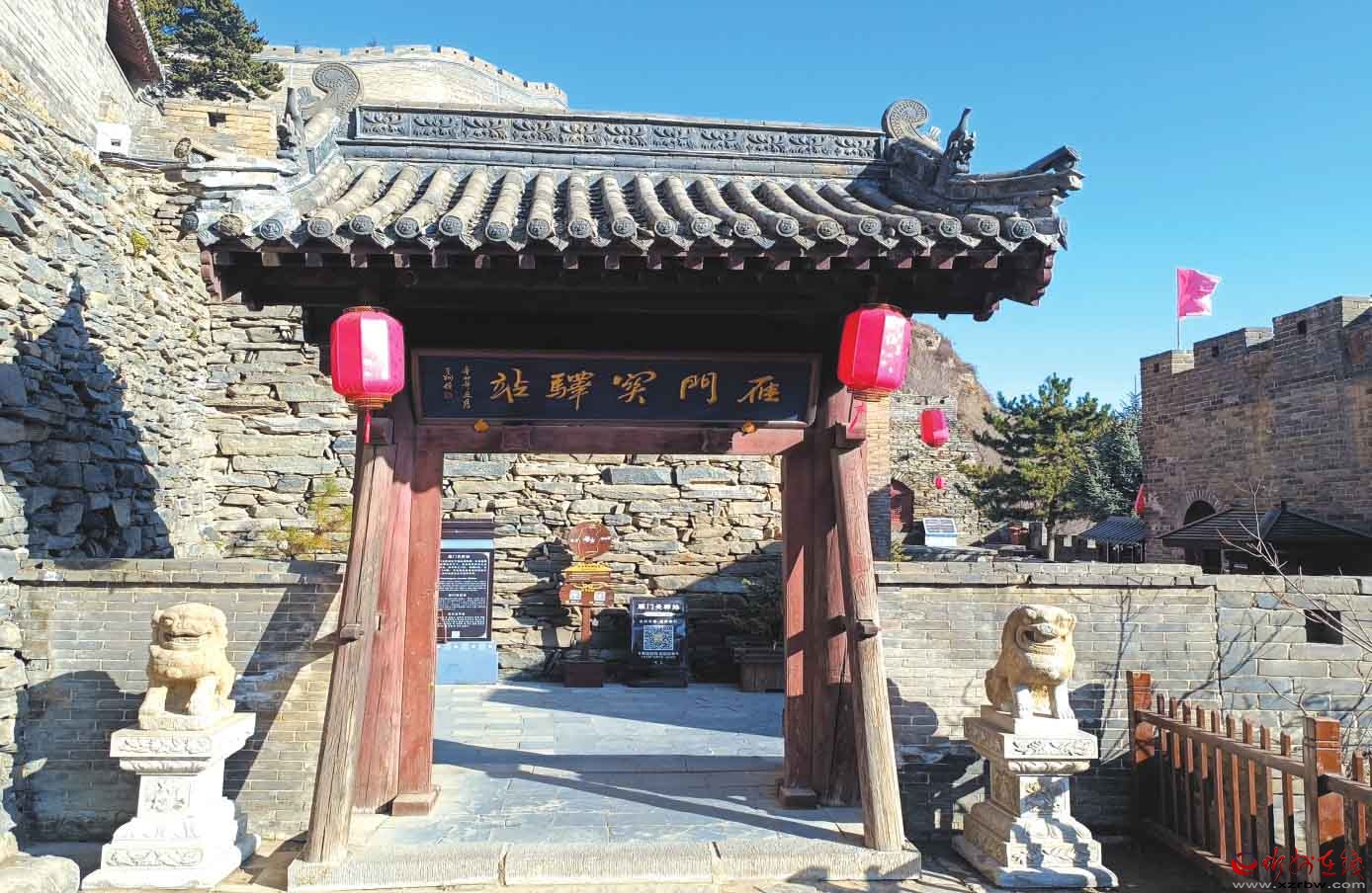 寒風凜冽,旗幟飛揚,城頭大鼓橫列,有人握槌揮擊,鏗鏘激越,聲震山谷。腦海里不由得回想起屠洪剛那句有名的唱詞:“我站在烈烈風中,劍在手,問天下誰是英雄?”金戈鐵馬仿佛就在眼前的溝壑閃現(xiàn)。