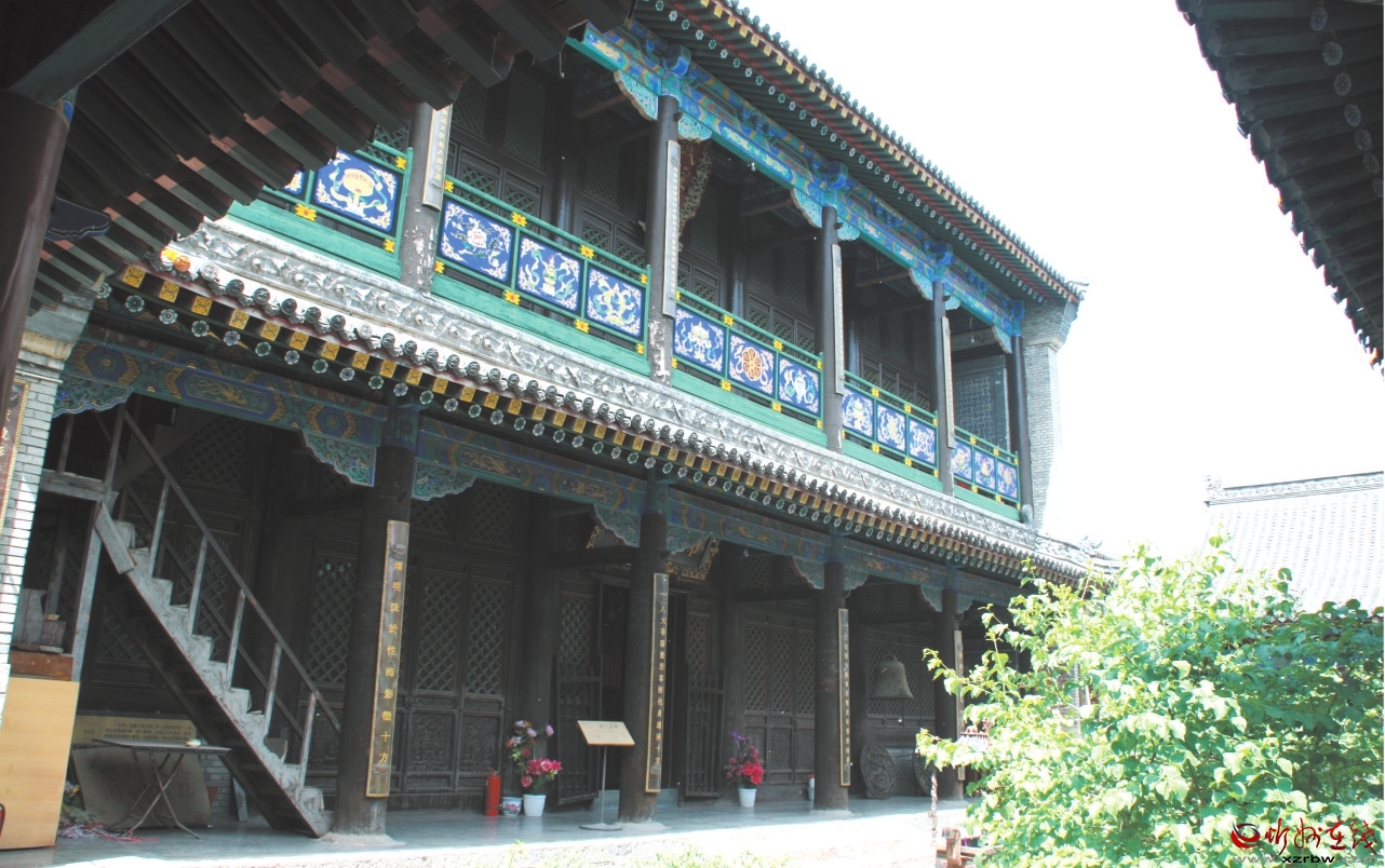 萬佛閣位于五臺縣臺懷鎮(zhèn)臺懷村。據(jù)碑載,始建于明萬歷年間,清代屢經(jīng)修葺。寺廟坐北朝南,為一進(jìn)院落布局。中軸線上依次建有戲臺、獻(xiàn)殿和五龍王殿,兩側(cè)分別置萬佛閣與僧舍。殿后建有清代喇嘛祖師塔兩座。 萬佛閣石砌臺基,面寬五間、進(jìn)深六椽,為二層三重檐歇山頂建筑,頂覆綠琉璃瓦,飾黃琉璃脊獸。上、下層均設(shè)圍廊,第一重檐斗拱為一斗二升交麻葉,第二、三重檐無斗拱,構(gòu)架為七檁前后廊式。下層明間設(shè)四扇六抹格扇門,次間設(shè)方格窗;上層明、次間均設(shè)四扇六抹方格扇門,廊柱間安木制欄桿。下層殿內(nèi)佛臺供三大士及十殿閻君朝地藏像,上、下層壁龕供小佛像萬余尊。 院內(nèi)存明萬歷鐵鐘一口、明碑三通、明代塑像三尊。近年來對諸殿進(jìn)行彩繪修繕。2022年,忻州市人民政府將其公布為市級文物保護(hù)單位。 (責(zé)任編輯:盧相?。?/span> |