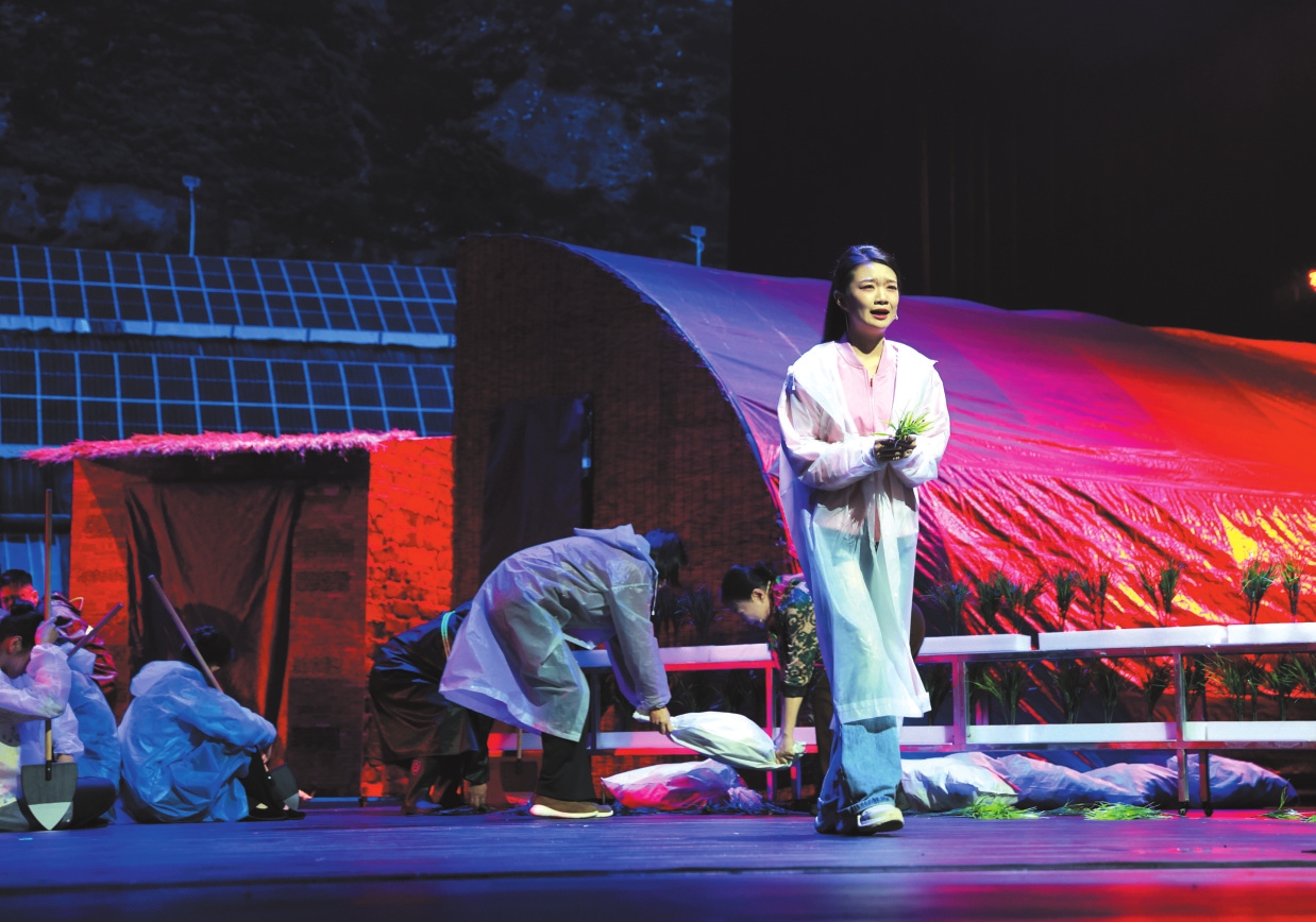 整體來說,話劇《三棵樹下》讓人感受到了編劇、導演以及演出全體的努力。無論是李小雨,還是曹民財,以及村民們,都被時代的洪流裹挾著,個體命運的軌跡不可避免地在歷史的變革洪流中發(fā)生改變。劇目結(jié)尾,以“鄉(xiāng)村文化旅游季”為契機,宋家溝村民們在李小雨、第一書記王家寶以及村委一干人帶領(lǐng)下,大力發(fā)展大棚經(jīng)濟,農(nóng)文旅齊發(fā)展,走上了增收致富的康莊大道,村民們由“要我干”到“我要干”,觀念一旦轉(zhuǎn)變,一切就大變模樣。你只要擺正位置,發(fā)揮自己的優(yōu)勢,就能在鄉(xiāng)村變革中展現(xiàn)嶄新的作為。這便是《三棵樹下》提供給我們的重要啟示。站在這個角度上說,話劇《三棵樹下》的成功也就是順理成章的事情了。其兼具思想深度、藝術(shù)張力和情感溫度,給予觀眾十分好的藝術(shù)享受。(趙志峰)