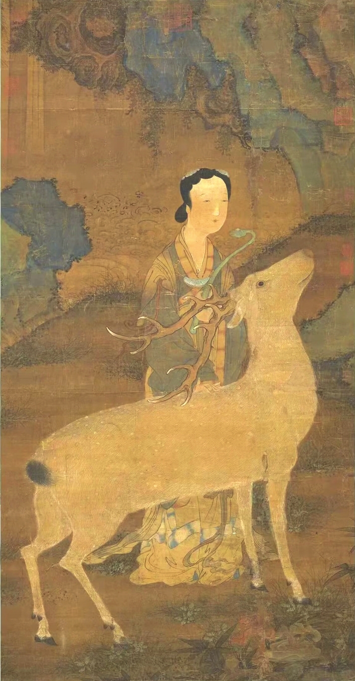 在傳統(tǒng)文化中,鹿是一種有神力的動物,神話傳說中鹿往往是神仙的坐騎。李白一生尋仙問道,其《夢游天姥吟留別》中有“且放白鹿青崖間,須行即騎訪名山”之名句。南極仙翁的白鹿,不僅被繪制在壽畫里,在文學(xué)中也大放異彩?!段饔斡洝分械陌茁咕褪菈坌悄蠘O仙翁的坐騎,偷得壽星的蟠龍拐杖后下凡為妖。在《白蛇傳》里,白娘子獨闖昆侖山,欲盜取起死回生的靈芝仙草,遭遇鶴、鹿二仙童阻攔。清代神魔小說《女仙外史》中的鹿童化為道人,下凡后為禍人間。屢破票房紀(jì)錄的動畫電影《哪吒2》,其中的反派之一鹿童,是無量仙翁的大弟子,擔(dān)任捕妖隊頭領(lǐng),戲份頗重。
