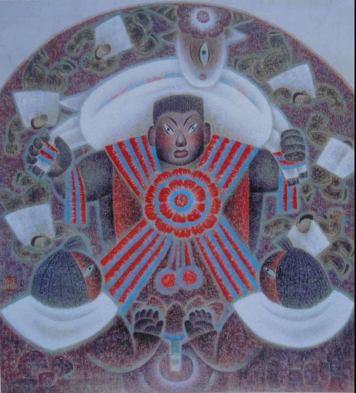 1973年開(kāi)始自學(xué)美術(shù)并業(yè)余創(chuàng)作,專(zhuān)國(guó)畫(huà)兼及水粉、漫畫(huà)、剪紙。數(shù)十年來(lái)廣采博收,上溯遠(yuǎn)古巖畫(huà)、畫(huà)像磚、石、帛畫(huà)、洞窟壁畫(huà)、院體工筆以及民間剪紙、泥塑,面塑、年畫(huà);橫向上油畫(huà)、版畫(huà)、裝飾、現(xiàn)代設(shè)計(jì)乃至西方藝術(shù)皆有涉獵吸收,融匯貫通,形成了一種既富傳統(tǒng)民族特色、鄉(xiāng)土味濃郁,又極具現(xiàn)代感的、自成一格的個(gè)人風(fēng)格。