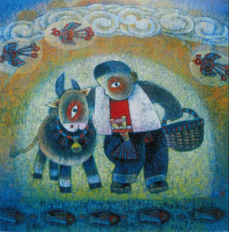 沒(méi)想到張俊畫(huà)的這么好!從前到后越畫(huà)越深入,越有內(nèi)涵,越成熟。吸收的東西很多,民間的、西方的都有,變形很自信,很有意思,美院的人畫(huà)不了。畫(huà)面形式、結(jié)構(gòu)、色彩、造型都很好,可以看出造型功底好,辦法也多。