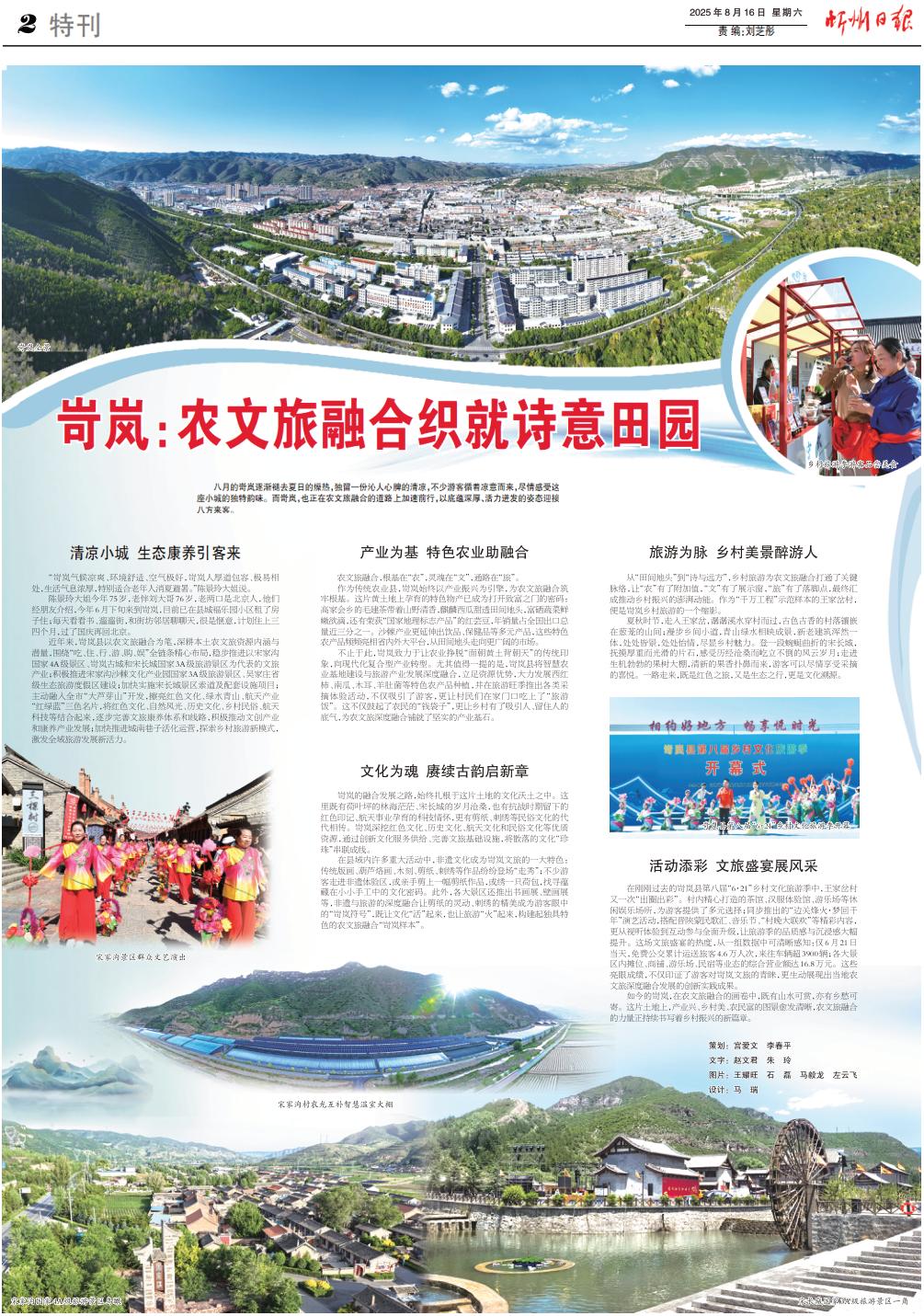從“田間地頭”到“詩與遠方”,鄉(xiāng)村旅游為農(nóng)文旅融合打通了關(guān)鍵脈絡(luò),讓“農(nóng)”有了附加值,“文”有了展示窗,“旅”有了落腳點,最終匯成推動鄉(xiāng)村振興的澎湃動能。作為“千萬工程”示范樣本的王家岔村,便是岢嵐鄉(xiāng)村旅游的一個縮影。