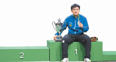 樊振東在頒獎(jiǎng)儀式上。新華社發(fā)