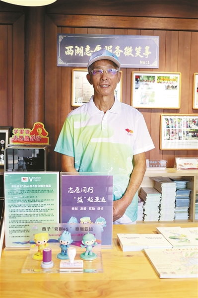 “不培訓(xùn)不上崗,不合格不上崗”,這是亞運(yùn)城市志愿者上崗的“硬要求”,也是景區(qū)志愿者做好服務(wù)的“金名片”。年過(guò)七旬的志愿者施志平,已經(jīng)連續(xù)在西湖邊服務(wù)了11個(gè)年頭。“最近的洗手間怎么走”“音樂(lè)噴泉在哪里看”“西湖游船哪里可以坐”,這些問(wèn)題他一天不知要回答多少遍,“馬上開亞運(yùn)會(huì)了,會(huì)有更多人來(lái)到杭州、來(lái)到西湖,我也希望能夠?yàn)楹贾荻嘧鲂┴暙I(xiàn)?!笔┲酒秸f(shuō),“最近我們也從年輕人身上學(xué)到了很多技能,尤其是英語(yǔ),希望到時(shí)候能為大家提供更周到的服務(wù)。”