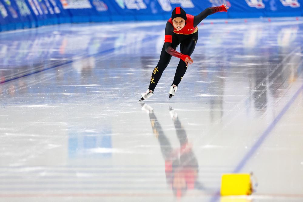 在女子1500米比賽中,該項(xiàng)目冬青奧會亞軍、吉林隊(duì)選手劉昀琪展現(xiàn)出良好的競技狀態(tài),滑出1分59秒28,收獲本屆全冬會個人的第二枚金牌。