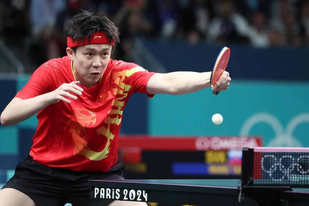 7月28日,王楚欽在比賽中回球。新華社記者 劉續(xù) 攝