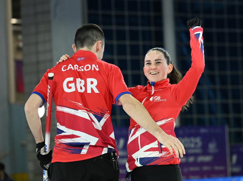 冰壺混雙項(xiàng)目是本屆大冬會(huì)首次設(shè)立的比賽項(xiàng)目,吸引了來自8個(gè)代表團(tuán)的隊(duì)伍參賽。決賽在英國(guó)隊(duì)和德國(guó)隊(duì)之間展開。英國(guó)組合芒羅和卡森表現(xiàn)出色,以10:8戰(zhàn)勝德國(guó)隊(duì),奪得歷史首金。