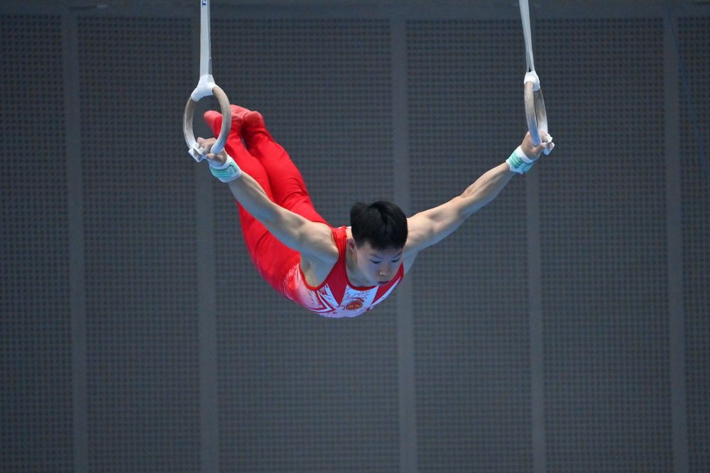 5月19日,楊皓楠在吊環(huán)比賽中。新華社記者 黃孝邦 攝