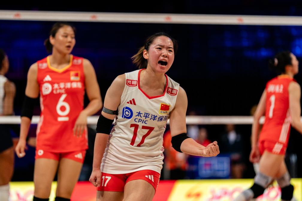 決定勝負(fù)的第五局,中國隊一度以10:7領(lǐng)先,但多米尼加隊追至13平。面對令人屏息的局末關(guān)鍵分,中國隊干脆利落連得兩分,以15:13笑到最后。