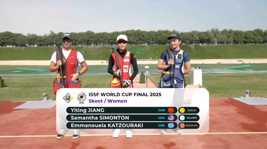 新華社多哈12月8日電 2025年國際射聯世界杯總決賽8日在多哈收官,中國選手江伊婷在女子雙向飛碟決賽中彈無虛發(fā),以36靶全中的成績奪冠。中國隊最終以4金2銀3銅位居獎牌榜榜首。