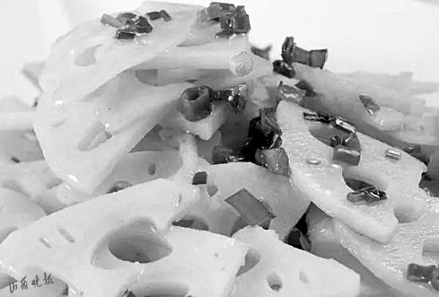 民俗流傳中,人們借助于蓮藕的特征和諧音賦予了它更多的吉祥內(nèi)容。古太原地區(qū)的傳統(tǒng)筵席“八碟八碗”中,有一款坐底大菜——涼拌蓮菜(本地人叫藕根大片)。之所以如此安排,完全就是沿用了諧音吉祥的民俗習(xí)慣?!芭骸迸c“偶”諧音,藕根大片占個(gè)“偶”,有佳偶天生的美好寓意,故而成了八大碗中必不可少的一道菜品?!吧彶恕庇种C音“連財(cái)”,意思是菜上完了,還有扯不斷、沒(méi)完沒(méi)了的財(cái)運(yùn),八碗帶財(cái)一起來(lái)。寓意如此美好,自然人人都滿意。