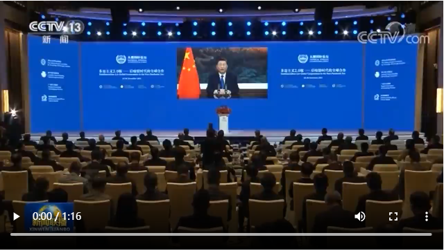 12月5日,國家主席習(xí)近平在北京向“2021從都國際論壇”開幕式發(fā)表視頻致辭。新華社記者 黃敬文攝