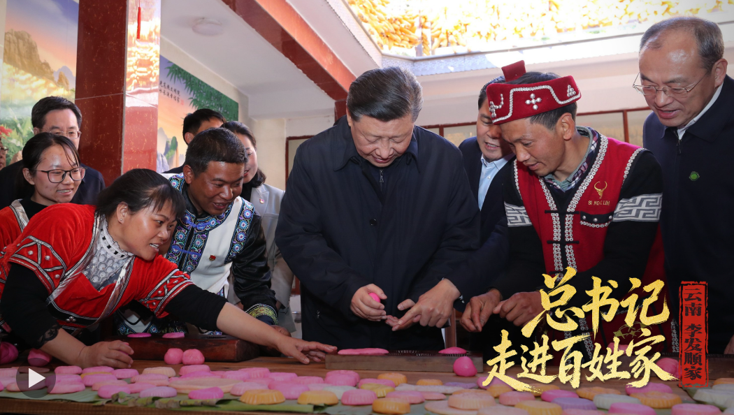 2020年春節(jié)前夕,習(xí)近平總書記走進(jìn)云南騰沖市清水鄉(xiāng)三家村中寨司莫拉佤族村,同村民李發(fā)順一家制作當(dāng)?shù)毓?jié)日傳統(tǒng)食品大米粑粑??倳浺贿B做了兩個(gè),笑著說:“摁了個(gè)福字,再來一個(gè)喜字,有福有喜?!?/p>