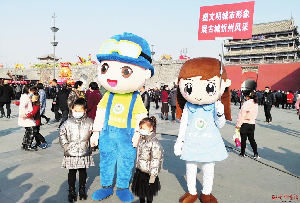 2月26日,農(nóng)歷辛丑年元宵節(jié),忻州古城北城門樓廣場上,兩名卡通形象裝扮的環(huán)保志愿者向群眾宣傳環(huán)保政策法規(guī),倡導(dǎo)環(huán)保過節(jié)、文明旅游。為豐富和活躍群眾文化生活,展現(xiàn)忻州古城保護(hù)活化新成就,元宵節(jié)期間,忻州古城舉行了社火游行,吸引了廣大市民。忻州市環(huán)保志愿者協(xié)會(huì)借機(jī)組織了環(huán)保宣傳活動(dòng)。 (張劍雄 攝)
