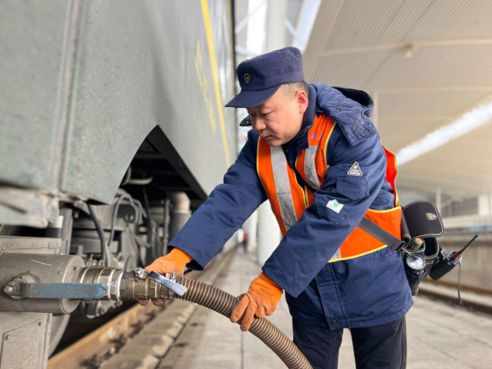 作為山西境內(nèi)唯一的通過車吸污作業(yè)點(diǎn),太原南站吸污作業(yè)點(diǎn)全年無(wú)休,承擔(dān)著通過太原南站的普速、動(dòng)車、高鐵的吸污作業(yè)。春運(yùn)期間,吸污工作量加大,除去臨時(shí)加增的吸污作業(yè)任務(wù),每天從早上7點(diǎn)至夜間12點(diǎn),固定有14輛列車需要進(jìn)行吸污作業(yè)。