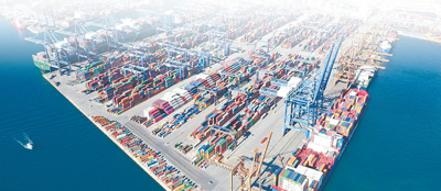 由中國遠(yuǎn)洋海運(yùn)集團(tuán)運(yùn)營的希臘比雷埃夫斯港俯瞰圖。新華社記者 吳 魯攝