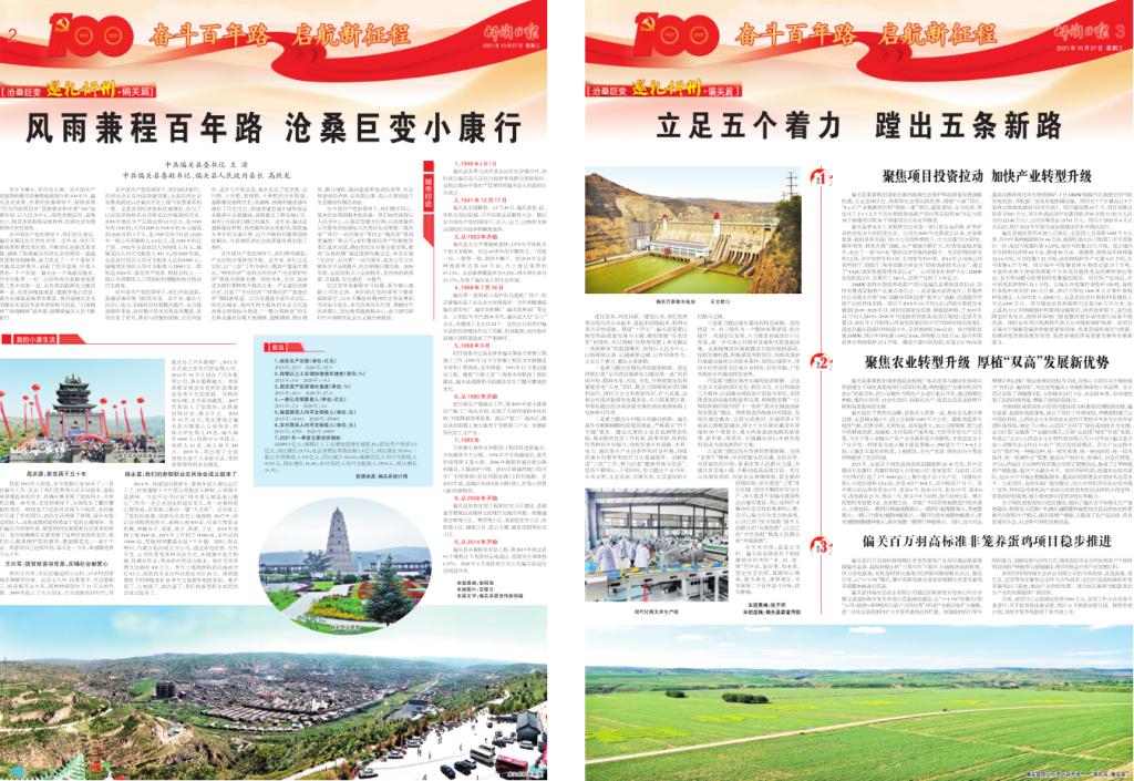 穿歲月峰頭,伴歷史云煙。在中國共產(chǎn)黨披荊斬棘風雨兼程砥礪前行的100年中,偏關(guān)縣在省委、市委的堅強領(lǐng)導下,按照省委“四為四高兩同步”思路要求和市委“336”戰(zhàn)略布局,以人民為中心,堅持舉旗定向、迎難而上,脫貧攻堅取得全面勝利,經(jīng)濟社會發(fā)展取得歷史性成效。