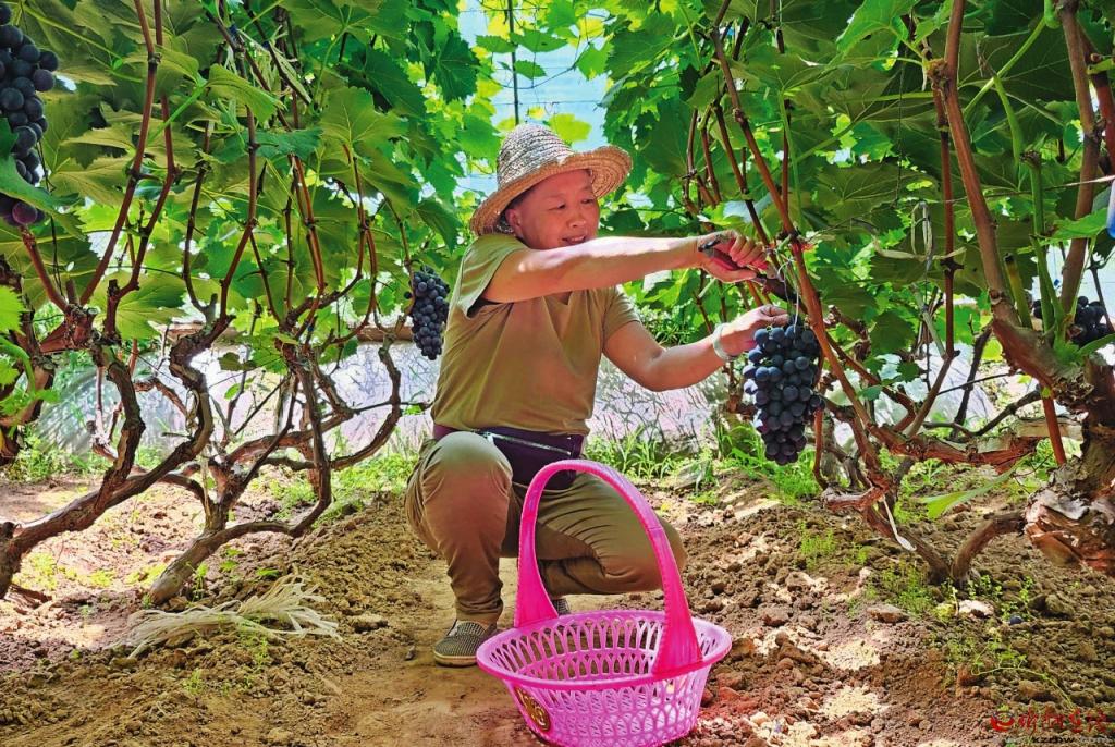 葡萄每年7月份開園上市,上市周期為一個(gè)多月。為確保在葡萄口感最佳時(shí)期讓各地游客前來品嘗、采摘,彭麗萍每天都會(huì)及時(shí)翻土驅(qū)蟲、摘除病葉,并在線上線下開展多渠道推廣。