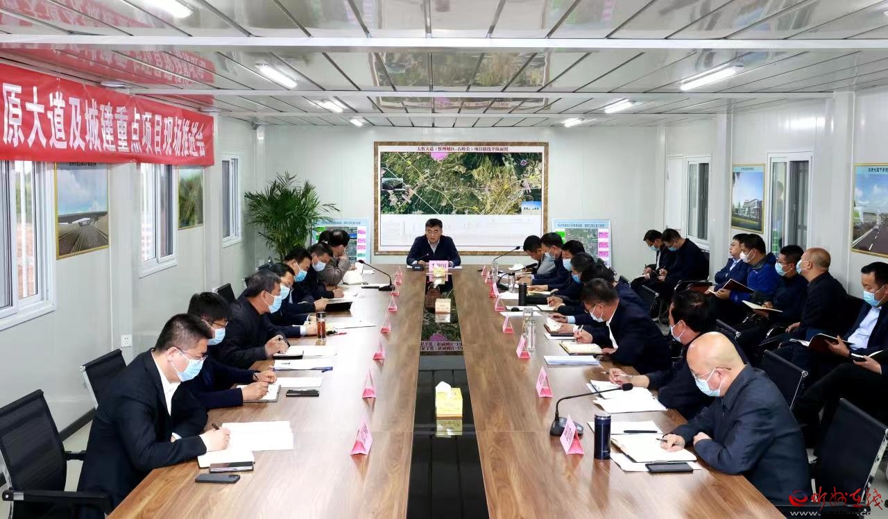 推進(jìn)會(huì)現(xiàn)場(chǎng)。張存良 攝 5月7日,市委副書記、市長(zhǎng)李建國(guó)實(shí)地察看東環(huán)路南延、太忻大道工程進(jìn)展,在太忻大道建設(shè)總指揮部聽取忻原大道、城東片區(qū)新建道路管網(wǎng)工程、城區(qū)智慧停車位建設(shè)項(xiàng)目、中華長(zhǎng)城博物館(園)和今年擬建改建道路等城建重點(diǎn)工程進(jìn)展情況匯報(bào),現(xiàn)場(chǎng)研究協(xié)調(diào)解決項(xiàng)目推進(jìn)中存在的困難問題。副市長(zhǎng)耿鵬鵬一同察看并主持匯報(bào)推進(jìn)會(huì),市政府秘書長(zhǎng)張艮生和市直相關(guān)部門、工程施工單位負(fù)責(zé)人等參加。
