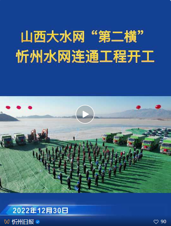 12月30日,山西大水網(wǎng)第二橫忻州水網(wǎng)連通工程開工儀式在雙乳山水庫舉行。市委書記朱曉東出席儀式并宣布工程開工。市委副書記、市長李建國,省水利廳副廳長裴峰出席儀式并講話。市政協(xié)主席范建民,市領導劉卓良、張文偉、張敏、史紅波、耿鵬鵬、李碩,市政府秘書長張艮生參加。副市長崔崢嶺主持儀式。