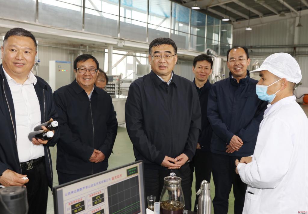 在寧武縣農(nóng)業(yè)產(chǎn)業(yè)園區(qū),李建國了解九峰毛健、湯朝茗香、管涔仙草、一品緣等藥茶系列產(chǎn)品,以及黃芪艾條等山珍中藥材新產(chǎn)品,走進神達朝凱蘆芽山公司察看毛建茶生產(chǎn)工藝,赴寧化鎮(zhèn)頭馬營村毛建草育苗基地了解種苗繁育情況。他說,要深入挖掘毛健茶等忻州特色藥茶的功效,主動學(xué)習(xí)浙江龍井、云南普洱、福建武夷花茶等市場培育銷售經(jīng)驗,政府積極搭建平臺,用好用足鄉(xiāng)村e鎮(zhèn)等政策,在促進品目科學(xué)繁育、產(chǎn)品多樣豐富、市場健康發(fā)展上不遺余力深耕細(xì)作,培育高效營銷團隊,講好忻州藥茶故事,將生態(tài)文旅與藥茶專業(yè)鎮(zhèn)建設(shè)深度融合,打造轉(zhuǎn)型發(fā)展新引擎。