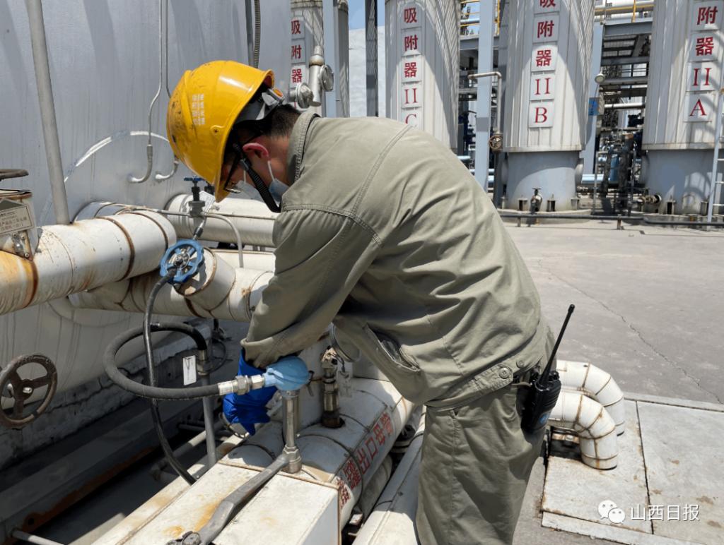 作為山西省重點(diǎn)熱電聯(lián)產(chǎn)企業(yè),變廢為用,是瑞光熱電在煤炭清潔低碳發(fā)展方向上打出的實(shí)招。烈日炎炎之下,山西瑞光熱電有限責(zé)任公司發(fā)電部副主任申永亮正戴著厚厚的操作手套采集二氧化碳樣本。擰開(kāi)閥門的一瞬間,白色霧氣就在他手中的采集杯里結(jié)了一層薄冰。