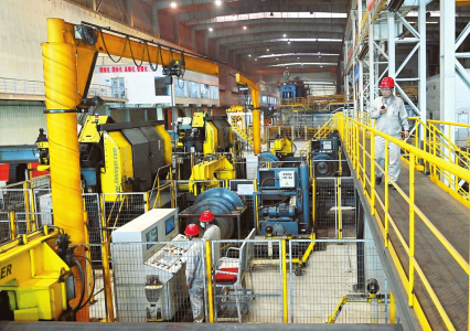 在環(huán)形爐控制室,俯瞰窗外火熱的生產(chǎn)現(xiàn)場(chǎng),只見鋸切、加熱、預(yù)成型、成型、軋制、壓彎各工序井然有序,智能高效的生產(chǎn)場(chǎng)景令參觀者嘖嘖稱贊。