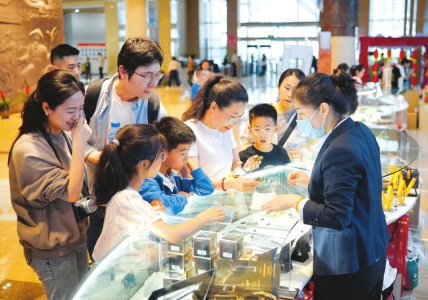 4月30日,運城博物館里,“運城禮物”非遺市集熱鬧開市。“黑泥密語”護膚套盒、關公銀像、《河東十三邑 中華編年史》讀寫繪……極具代表性的非遺文創(chuàng)產(chǎn)品和13個縣(市、區(qū))的特色禮物一同精彩亮相。眼下,運城博物館5個文創(chuàng)商店、3個網(wǎng)絡平臺,已同步上線銷售385種文創(chuàng)產(chǎn)品。