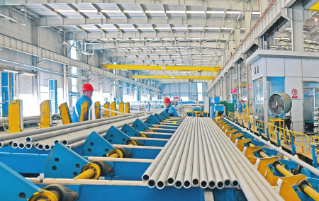 巨大的生產(chǎn)車間內(nèi),機(jī)器轟鳴,一根根坯料經(jīng)過(guò)穿孔、酸洗、拋光、冷軋等近40道工序,變成锃亮堅(jiān)固的不銹鋼管,發(fā)往國(guó)內(nèi)外企業(yè),成為電站、鐵路、新能源、油氣開(kāi)采等行業(yè)的重要材料。在山西太鋼不銹鋼鋼管有限公司,一系列特色管材產(chǎn)品實(shí)現(xiàn)了在重大裝備上的突破性應(yīng)用,提高了太鋼鋼管產(chǎn)品的美譽(yù)度和競(jìng)爭(zhēng)力。
