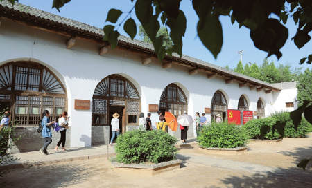 盛夏時節(jié),呂梁市興縣蔡家崖村一派生機(jī),群山環(huán)抱下的晉綏邊區(qū)革命紀(jì)念館,莊嚴(yán)地矗立在蔚汾河畔。