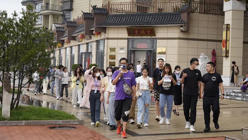 記者團成員在晉明堂采訪。記者楊惠生攝