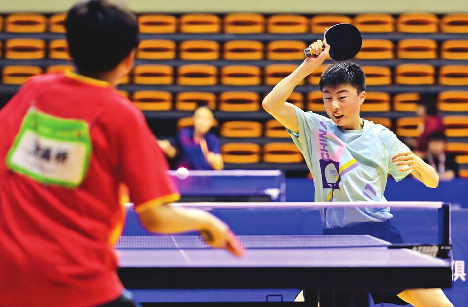 八月十一日,在省第十六屆運動會乒乓球男子甲組的比賽中,太原選手劉冠成(正面)擊敗大同對手王滿橋獲得冠軍。