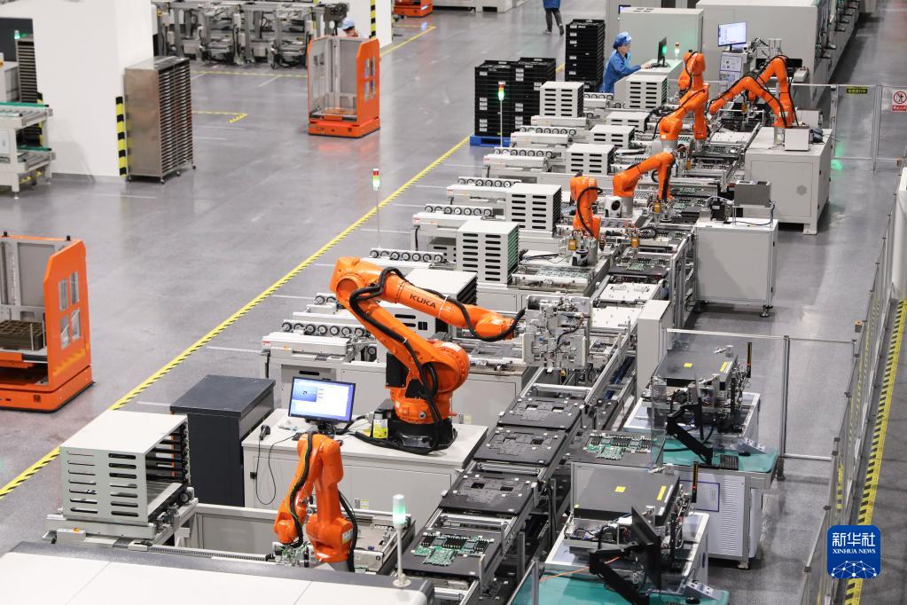 機(jī)械臂揮舞翻轉(zhuǎn)、智能運(yùn)輸小車(chē)靈活穿梭……日前,記者走進(jìn)紫光恒越(杭州)技術(shù)有限公司“未來(lái)工廠”,生產(chǎn)車(chē)間里除了零星幾位工人偶爾檢查巡視,幾乎看不到其他身影。