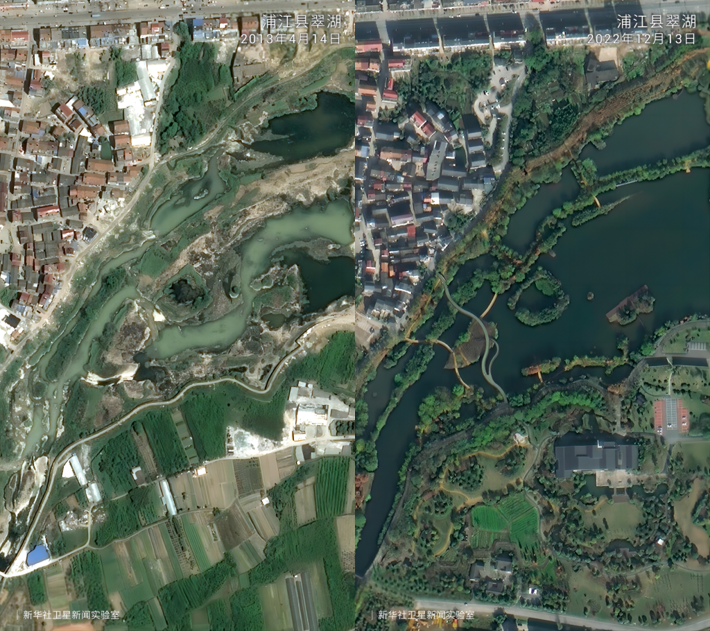 一組組衛(wèi)星對(duì)比圖見(jiàn)證了歲月流轉(zhuǎn)中的鄉(xiāng)村巨變。放眼浙江廣闊大地,這場(chǎng)跨越20年的美麗接力正煥發(fā)新的生機(jī)。