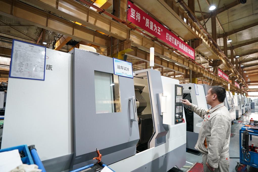通用技術(shù)集團(tuán)沈陽(yáng)機(jī)床的工人在車(chē)間工作。新華社記者潘昱龍 攝