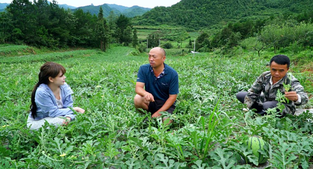 圖為貴陽市烏當(dāng)區(qū)新堡鄉(xiāng)新堡村一農(nóng)場負(fù)責(zé)人林正福查看西瓜生長情況。(韋登亮 攝)
