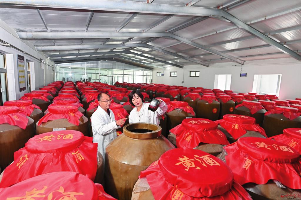 市委、市政府提出的黃酒專(zhuān)業(yè)鎮(zhèn)發(fā)展“1228”戰(zhàn)略,其中“1”便是錨定“建設(shè)北方黃酒主產(chǎn)區(qū),打造北方黃酒酒都”這個(gè)目標(biāo),這個(gè)戰(zhàn)略目標(biāo)涵蓋了代州黃酒最本質(zhì)的文化特色。 采訪中遇到的代縣人,無(wú)一不彰顯著代縣做強(qiáng)黃酒特色專(zhuān)業(yè)鎮(zhèn)的決心??h里重點(diǎn)扶持原料生產(chǎn)基地、北方黃酒故里園區(qū)、重點(diǎn)龍頭企業(yè)、科技產(chǎn)品研發(fā)、品牌市場(chǎng)營(yíng)銷(xiāo),全產(chǎn)業(yè)鏈推進(jìn)黃酒產(chǎn)業(yè)做大做強(qiáng),打造“中國(guó)北方黃酒酒都”,建設(shè)以黃酒為龍頭的釀品百億元級(jí)產(chǎn)業(yè)集群。 代縣目前共有酒類(lèi)注冊(cè)企業(yè)40家,其中黃酒生產(chǎn)企業(yè)13家,總設(shè)計(jì)產(chǎn)能2.04萬(wàn)噸。2022年,全縣黃酒企業(yè)產(chǎn)值為2億元??h里明確了到2027年實(shí)現(xiàn)“黃酒產(chǎn)業(yè)總產(chǎn)能達(dá)到30萬(wàn)噸,專(zhuān)業(yè)鎮(zhèn)綜合產(chǎn)值突破30億元,全產(chǎn)業(yè)鏈從業(yè)人數(shù)2萬(wàn)人,帶動(dòng)農(nóng)戶(hù)5000戶(hù),人均增收6000元”的目標(biāo)。 在“專(zhuān)”上下足功夫:做精做長(zhǎng)黃酒產(chǎn)業(yè)鏈條 上世紀(jì)90年代,“代州黃酒熱”一度風(fēng)靡省城太原;2011年,“代州黃酒制作技藝”被列入第三批省級(jí)非物質(zhì)文化遺產(chǎn)名錄;2019年代縣黃酒入選全國(guó)特色食品目錄。 代黃之道,精在釀其質(zhì),醇在調(diào)其香。品質(zhì),是代州黃酒的生命線。 貴喜酒業(yè)從上世紀(jì)70年代走街串巷賣(mài)酒起步,發(fā)展到今天,91歲的創(chuàng)始人高貴喜仍然親自深入車(chē)間,與早已接管企業(yè)的兒子不時(shí)商討。作為代州黃酒傳統(tǒng)釀造技藝的代表性傳承人、北派黃酒釀造大師,他認(rèn)為把酒品做精做好做專(zhuān)業(yè),是貴喜酒業(yè)多年來(lái)屹立不倒的成功秘訣。 “我們代州黃酒講究三無(wú)三原:無(wú)勾兌、無(wú)添加、無(wú)焦糖,原汁、原味、原色是我們的獨(dú)特之處……”每天晚上七點(diǎn)半至九點(diǎn)半,“代縣黃酒釀造技藝”省級(jí)非遺傳承人、代縣四達(dá)酒類(lèi)公司的創(chuàng)始人李全鎖都會(huì)準(zhǔn)時(shí)出現(xiàn)在“代州雁門(mén)金波”直播間里,講代州黃酒的故事、歷史文化,同時(shí)直播帶貨,在線銷(xiāo)售黃酒產(chǎn)品。借助物聯(lián)網(wǎng)、大數(shù)據(jù),不僅收獲了大量粉絲,也把代州黃酒及黃酒文化推銷(xiāo)到了全國(guó)各地。 “代州黃酒不摻水,就像地道的代縣人那般醇厚?!崩钊i對(duì)記者說(shuō)。2000年由國(guó)營(yíng)酒廠改制而來(lái)的四達(dá)酒類(lèi)飲料有限公司,見(jiàn)證了李全鎖引領(lǐng)代州黃酒行業(yè)摸爬滾打二十多年的歷程。