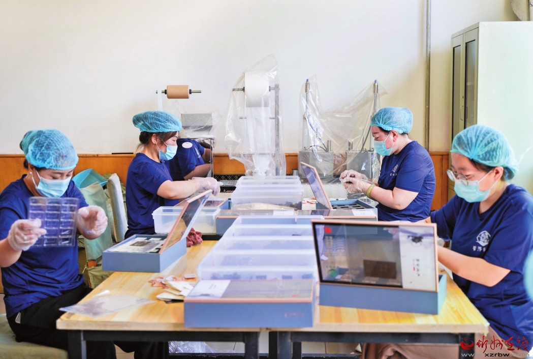 走進(jìn)山西一品緣茶葉有限責(zé)任公司制茶車間,一盤盤正在晾曬的毛建草,散發(fā)出陣陣香氣。它們?cè)谶@里,經(jīng)采用傳統(tǒng)手工工藝與現(xiàn)代工藝技術(shù),通過(guò)清洗、蒸煮、揉捻、發(fā)酵、炒制、烘干、篩分、色選補(bǔ)火、壓制、包裝等工序,搖身一變成為品相精美、口感鮮醇的毛建茶。