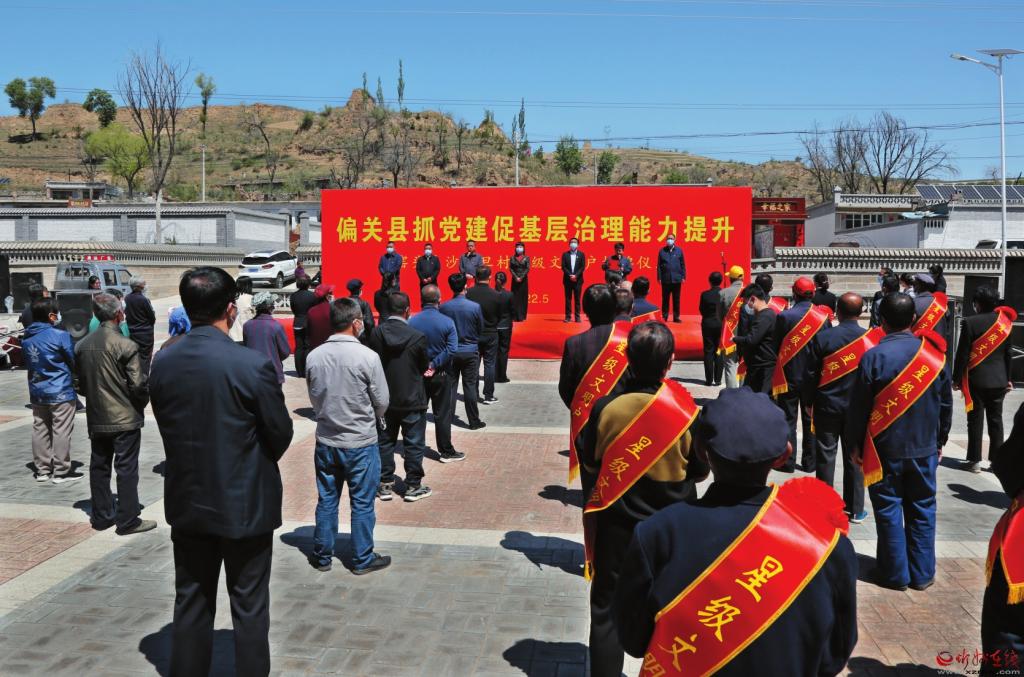 偏關(guān)縣為抓黨建促基層治理能力提升星級(jí)文明戶頒獎(jiǎng)授牌。 郝文俊攝