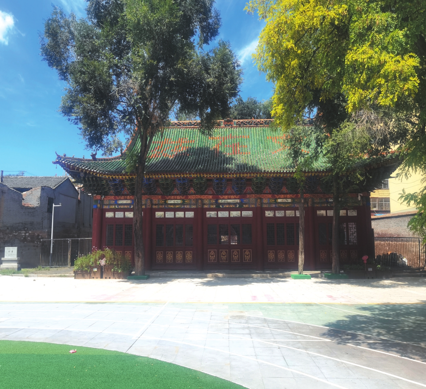 文廟位于寧武縣城人民大街的原寧武一中(現(xiàn)實驗小學(xué))院內(nèi),坐北朝南,南北長159米,東西寬29.2米,占地面積約6000平方米,為明清建筑?,F(xiàn)存建筑有大成殿、八角樓、明倫堂及東西配殿。