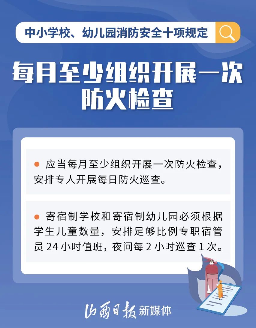 為加強中小學(xué)校、幼兒園消防安全管理,近日,教育部、國家消防救援局研究制定了《中小學(xué)校、幼兒園消防安全十項規(guī)定》,具體規(guī)定內(nèi)容如下。
