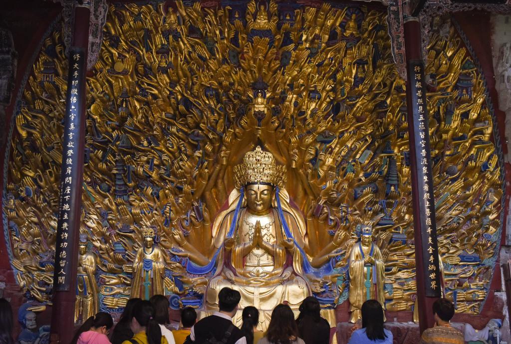 此后,隨著考古研究深入,大足境內(nèi)先后發(fā)現(xiàn)上百處、共5萬余尊摩崖造像,大足石刻的歷史輪廓也逐漸清晰:始建于初唐,至兩宋達(dá)鼎盛,集儒、釋、道三教造像之大成,以北山、寶頂山、南山、石門山、石篆山5處石窟最具特色,代表了公元9世紀(jì)至13世紀(jì)世界石窟藝術(shù)的最高水平。